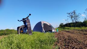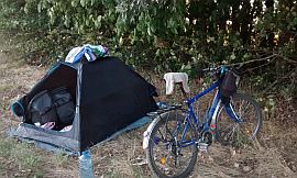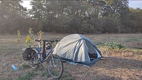 | Upon leaving Ruse you will traverse a hill and will reach Basarbovo. Pedling up the next hill, you will experience a grade on the right riverside (Rusenski Lom River) - my camp place. |