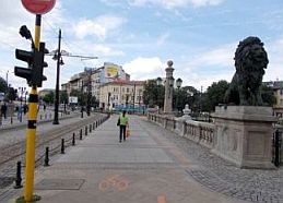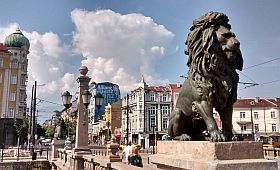 Tramway underpasses are not dark (as it is obvious from the pics below), no any danger to bicycle there. After the last underpass, you will be on the road again and the terrible overdressing “Nadezhda” will be behind you. The velo lane begins from so called "Lion Bridge" (the first photo below); after it go by the Sofia central Line Station toward overcrossing "Nadejda". As can be seen from the pics below, no any danger to pedal between the trains, one more time I will say, never mind they are very noisy, they are moving very slowly. I always use this route to avoid the Overcrossing "Nadejda". |