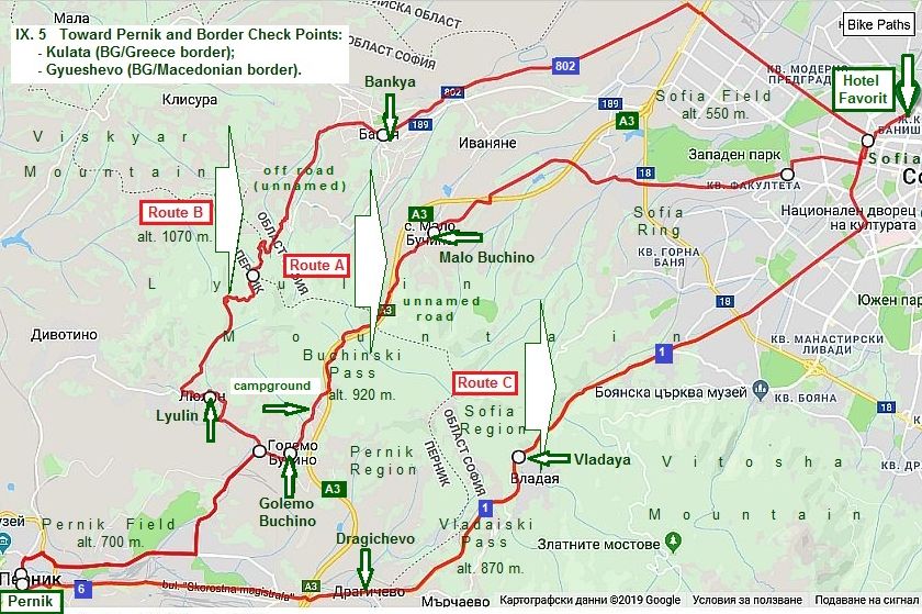 As it can be seen from the map IX.5 there are three possible routes between Pernik and Sofia: |