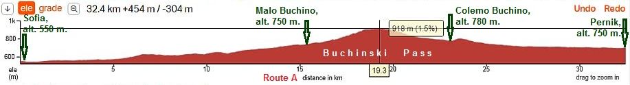 From Sofia to Malo Buchino to Golemo Buchino to Pernik. My suggestion is to choose it; it is in very nice conditions and it is parallel to the motor road A3; |