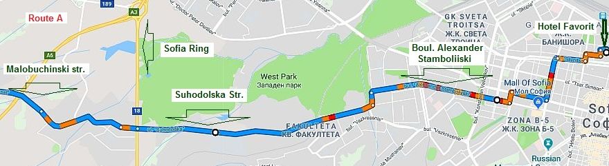 Reaching the Sofia ring 18, you have to be careful: the crossroad of roads 18 & A6, A2, 6. I point the two dangerous places on the map. Because the traffic is intensive, my suggestion is to walk here, at least I always do it here. |