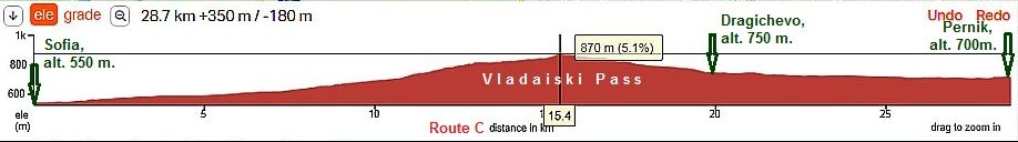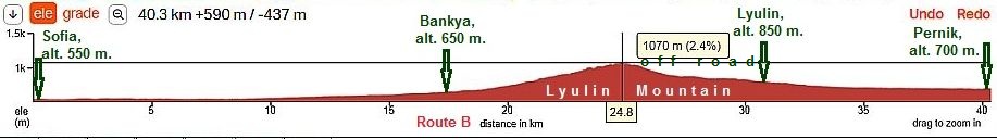 From Sofia to Bankya to Lyulin to Pernik. It is easy to be find out from Pernik to Sofia, there is an off-road segment; |