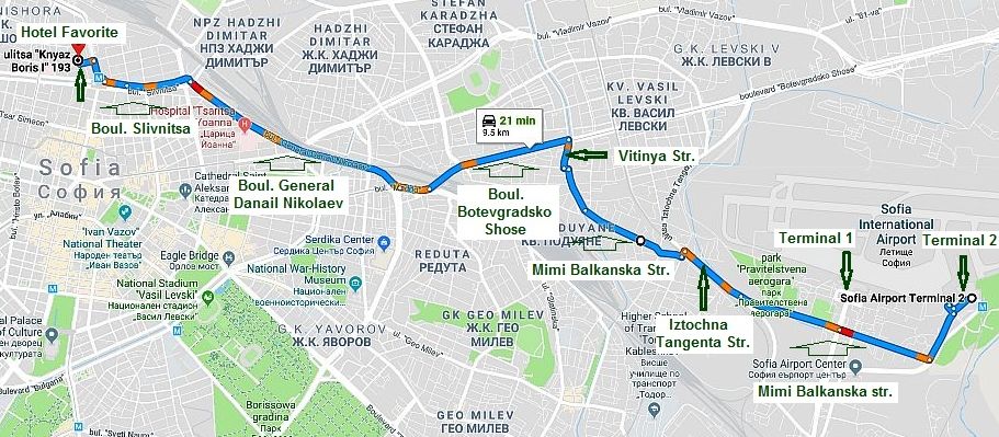 IX. 10. Airport – Hotel Favorite In the end, here I have shown the most convenient road connecting Hotel Favorite and Sofia airport, I know, some bicyclists start and finish theirs tour to/from airport. According to me it is the safest one for bicyclists, although a better variant would be to call for a taxi.