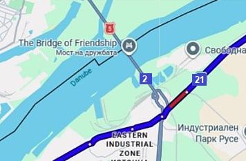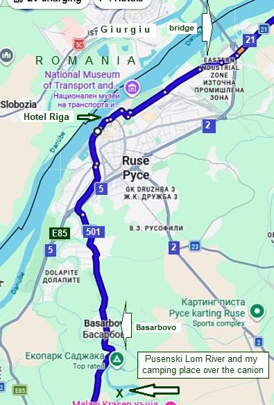 In this sector AVOID road E85. It is one of the most dangerous roads in Bulgaria. Once reaching Dve Mogili, you are on a higher place, the next route toward Ruse is slowly descending.