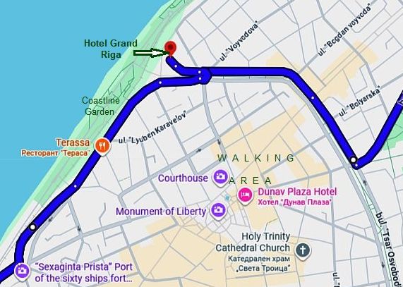 | Pedaling further on the road N501, you will reach Hotel Grand Riga (look the map above) - a place with a nice view toward Danube River next to hotel Riga. | ||