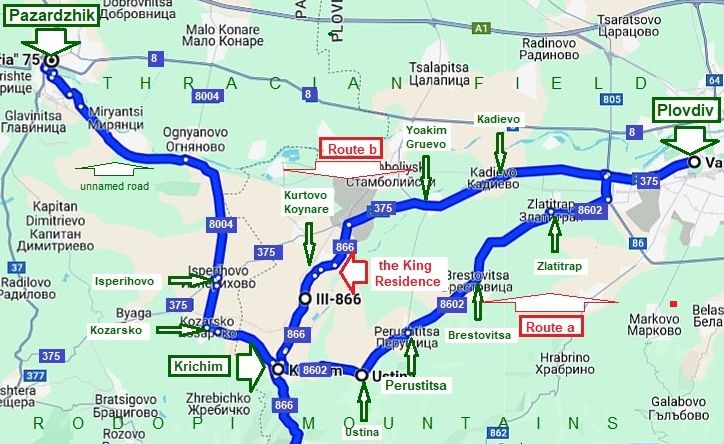 From Krumovgrad you can head toward Ivailovgrad (the Route 8, or toward Madzharevo and Harmanli - the route 12). Route b