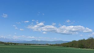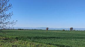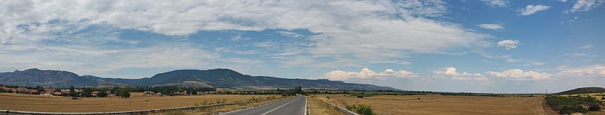 The road from Plodovitovo toward Chirpan cross a little bit higher hills. So back toward Rodopi Mountais, a very nice view is revealed. |