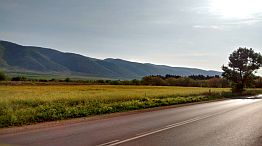 | The next several photos are towards Zornitsa. As the road segment from Yambol to Sredets was not maintained well for a long time, drivers definitely avoid it, which makes pedalling there very pleasant and save. | No any traffic here. The area is almost flat with no high rolling hills. In the hot summer days pedalling here is a little tough. Food and water is available in the villages along the road. |