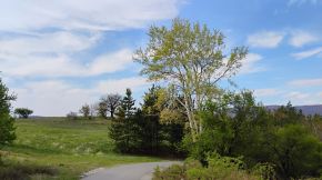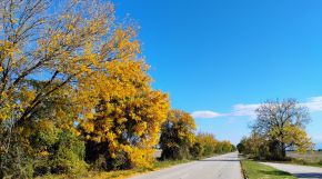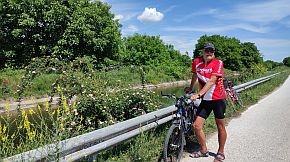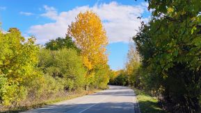 The area is scenic. In summer, it is very sunny, dry and hot, without any shade. Bring water with you. In July and August, along the roadsides, there are a lot of wild plums and black berries to enjoy. I recommend this route. The traffic here is minimal, the pedaling is safe and pleasant. |