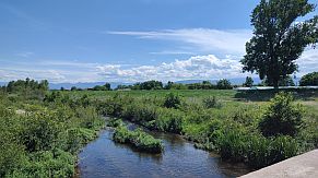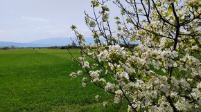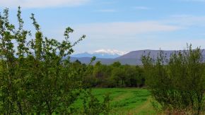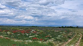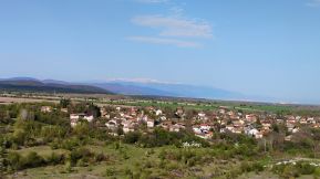 Once Vakarel is reached, a quite impressive view is revealed toward Rila Mountain, especially in the spring, when the area here is green and Rila Mountain is still covered by snow. |