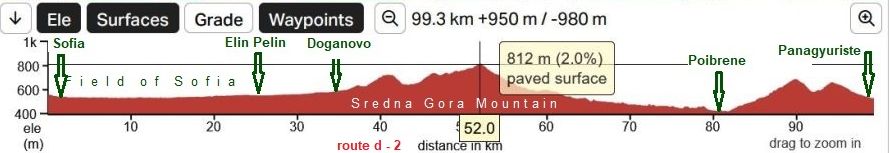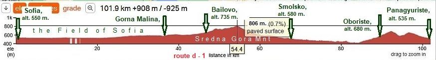 Sector VI. D - 5 Comparing with the route A, Route B is 40 - 50 kilometers longer, anyway, it includes the very scenic area between Balkan and Sredna Gora Mountains.