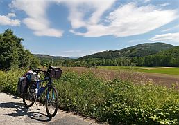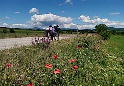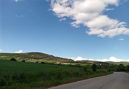 | The next several photos illustrate the countryside from Tvarditsa toward Nova Zagora. Here you will cross the valley of Tundzha River, after there is a little | climbing of the east low part of Sredna Gora Mountain, after, you will descend toward Nova Zagora and Thracian Field. |