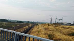 After go up to the train line, there is the second bridge over Struma River. There is a track for walkers, use it to cross the river. After 1/4 mile along the railway, you will be in General Todorov. |
