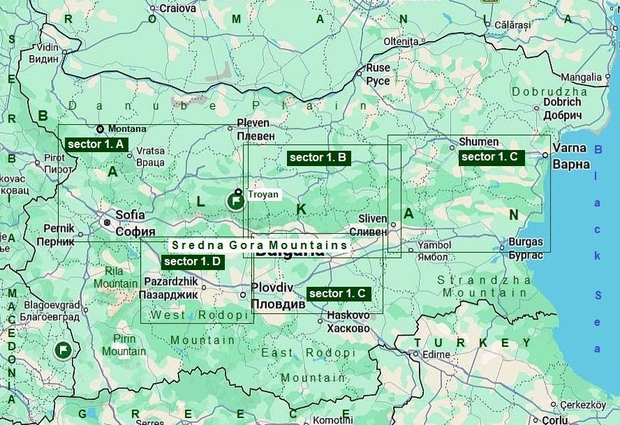 BALKAN, or as we call it “The Old Mountain”: The name of this mountain is deceiving. Geologically it is a young folded mountain, formally consists 3 parts (almost as I have parted it in 3 sectors above): - West part (from Serbian border to Zlatishki Pass): Sector I. A - Central part (from Zlatishki Pass to Vratnik Pass): Sector I. B It is the highest part of the mountain (here is the highest pick “Botev” at an altitude of 2376 meters). Most of this area is a protected zone, so called "Central Balkan Park"; - East part (from Vratnik Pass to Black Sea); Sector I. C It is a low and wider part of the mountain. I will list Balkan |
