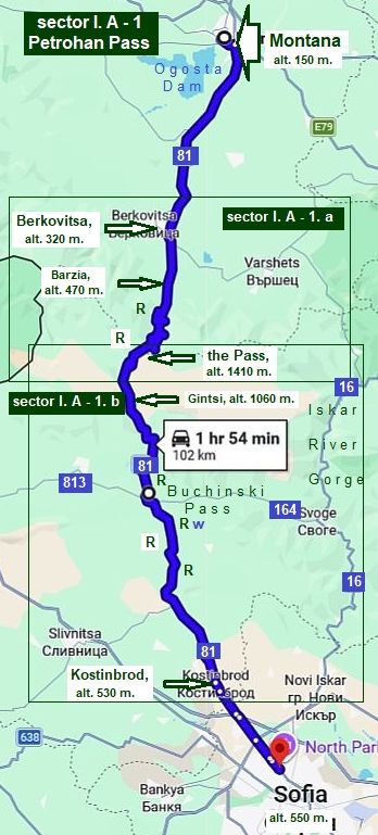 - sector I. A - 2. a: From Sofia to Svoge; - sector I. A - 2. b: From Svoge to Lakatnik; - sector I. A - 2. c: From Lakatnik to Mezdra; |
