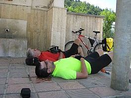 in its real power. We started to cycle more kilometers per day having the idea to go back to Sofia by bikes. And we did it. On the next day, after Sokolsky Monastery we reached a village named Cherni Osam - it is about 90 km. It was one of the best days - at noon when the sun would try to fry eggs on our helmets we found a restaurant with swimming pool. We felt like Bedouins which have found an oasis in the desert. From Cherny Osam we cycled to Teteven - it is 70 km and 32 up hill – “hills make me ill” was the motto. So having the experience of the previous day we decided to find a place to spend the hottest hours. We tried to find a swimming pool, but all of them were too noisy and crowded. So we jumped in to the close river - Beli Vit. We stayed in a hotel in Teteven. After we cycled to Botevgrad and then back to Sofia. The entire trip was approx 400 km. |