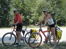 Victor and Aaron Erlich are father and son from US. They decided to come in Bulgaria for cycling trip for 8 - 16 August and Maya was their guide. At this moment Bob was busy, so Maya was the only leader of the group. Usually this is the hottest period in the summer, but they were so lucky: the temperature did not exceed 25-35 degrees all this time. I met them In Sofia airport and attended them to a nice hotel in the Sofia city I was book for them. So our trip started in Gorna Oriahovica, which we reached by train. After we cycled to Arbanasi and then to Veliko Tarnovo (the old Bulgarian capital), where we slept after a good dinner. The next day we took a little remote road and we cycled to Drianovski Monastery. It is very impressive place not only because of the monastery and also “Bacho Kiro” Cave and the great view from the top of the rock range. It was a little rainy but nobody paid attention, so we continued cycling to Triavna town. It is a town with ethnographic culture and we stayed there for the night. |